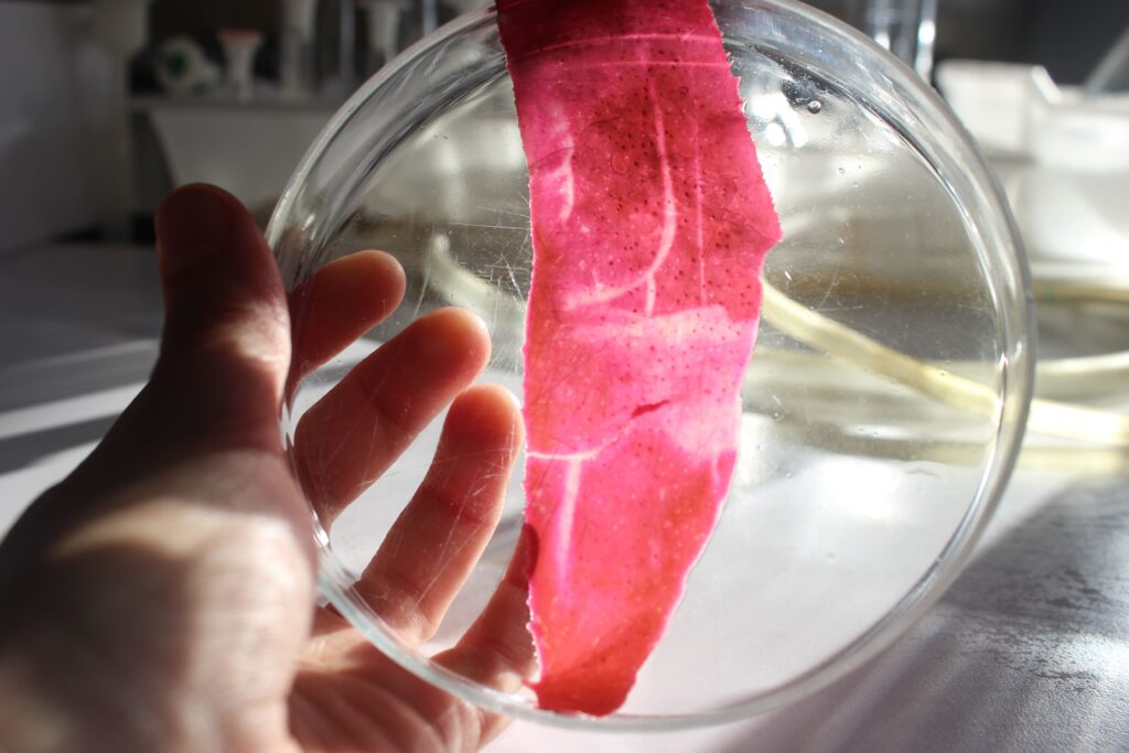 “Um encontro de práticas experimentais, de investigação artística com biomateriais, que procura meios mais sustentáveis de suporte da memória visual.”