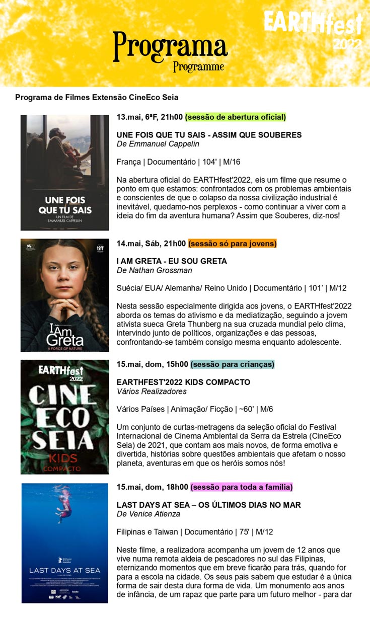 In addition to its official program in Seia, CineEco continues throughout the year with its national and international extensions. These decentralized sessions take the best of environmental cinema to schools, associations, cultural centers and partner festivals, raising awareness of ecological issues among different audiences and territories.